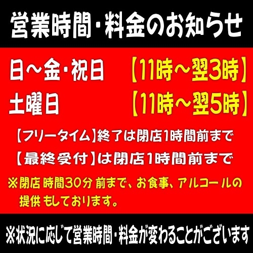 ※昼のフリータイムの受付は18時までですが、フリータイム自体は20時までご利用いただけます。