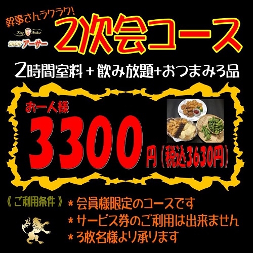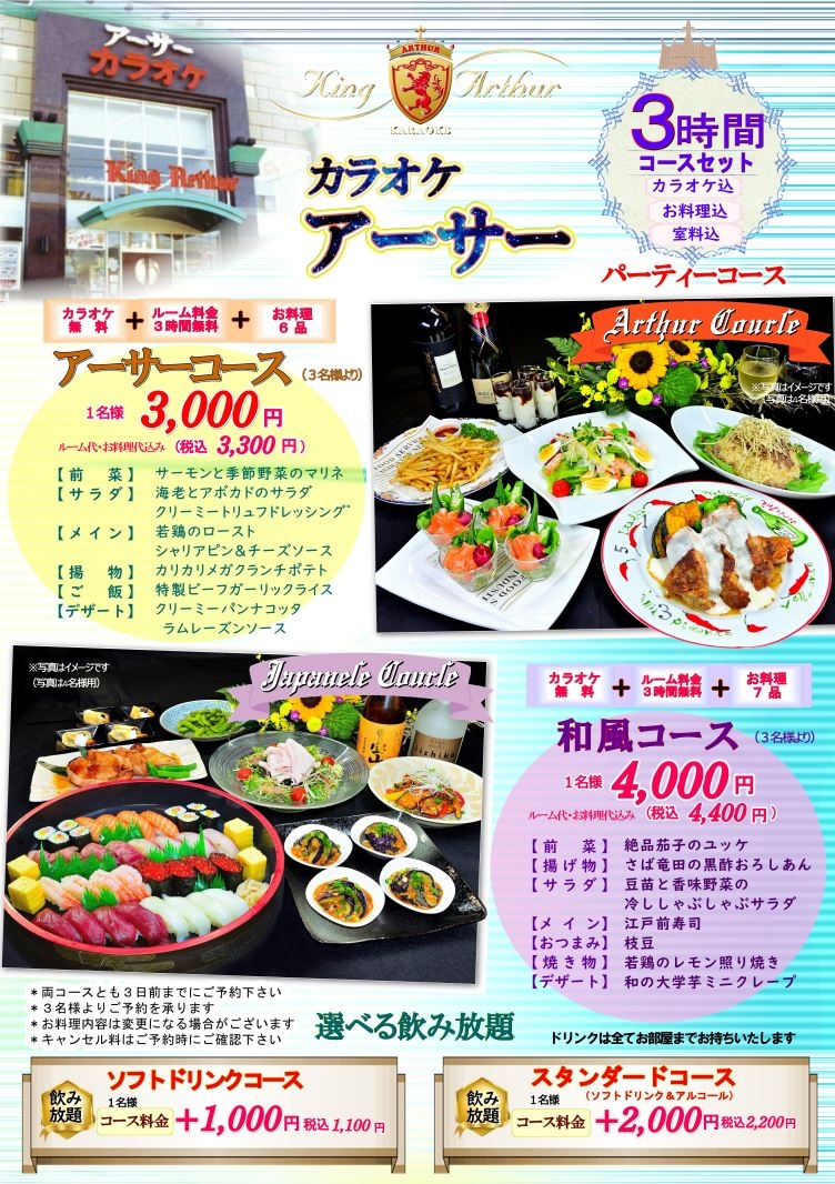 宴会の予約にぴったりのコース料理プラン♪ ・和風コースは創作和風料理! ・女性人気No1アーサーコースは洋風料理! カラオケと美味しい宴会料理でこの夏の宴会を楽しんで下さい!