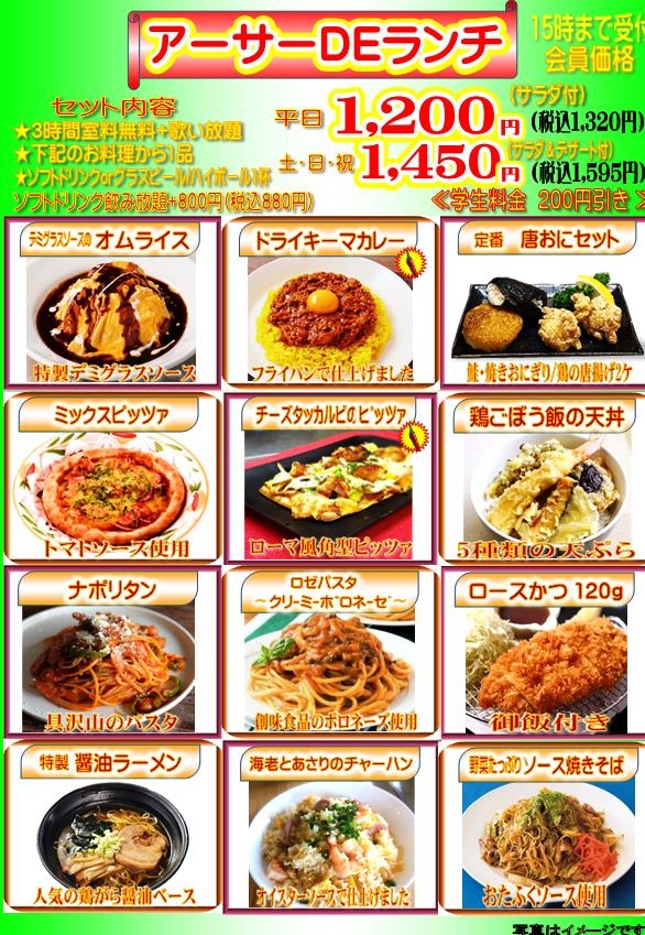 セット内容 ・3時間ルーム料金無料 ・12種の料理から1品 ・指定ドリンク1杯付 ・ランチ受付時間10:30~15:00 ・+880円でソフトドリンク飲み放題