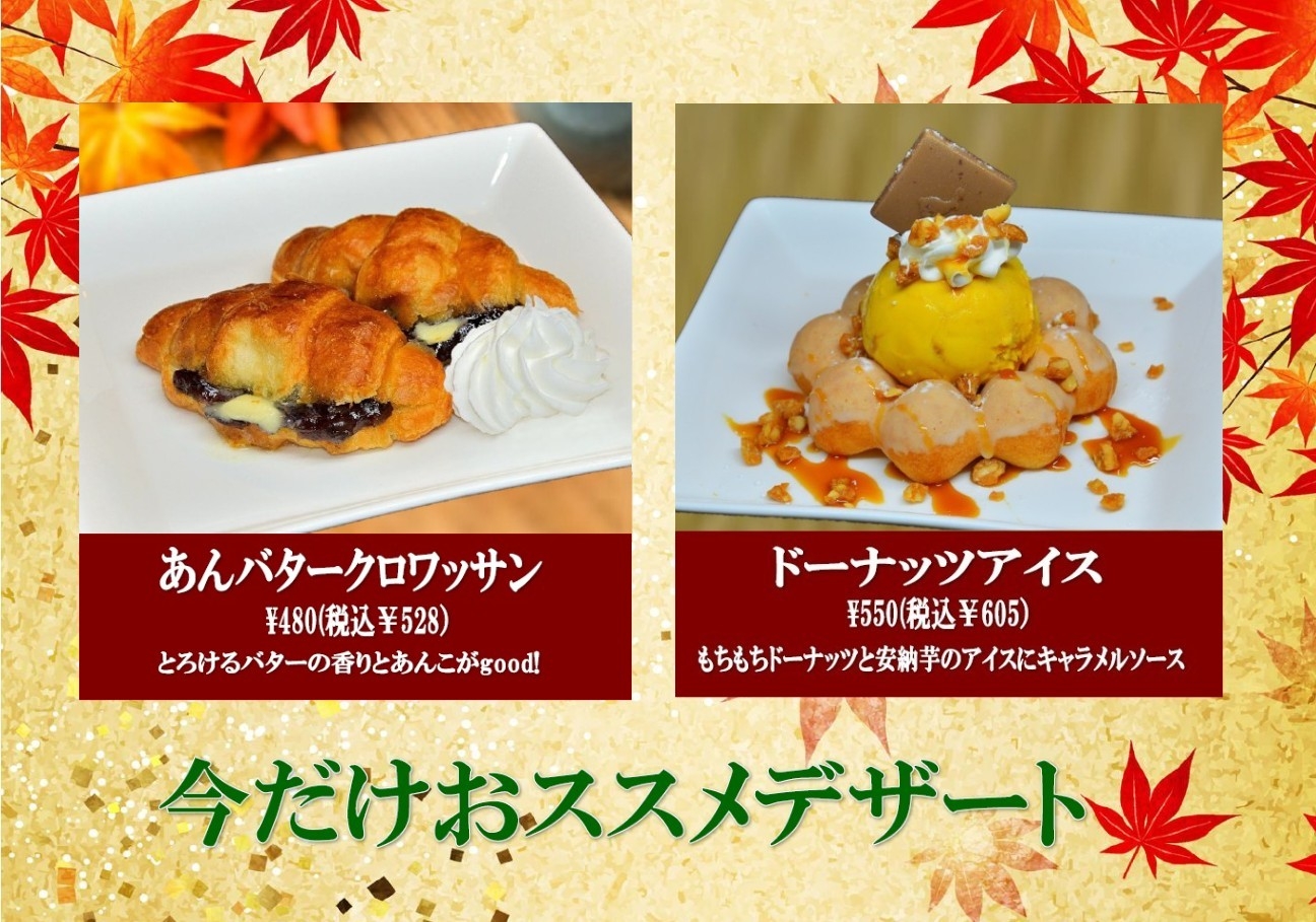 とろけるバターとあんこをサクサククロワッサンと一緒に食べるあんバタークロワッサン もちもちポンデドーナッツに安納芋のアイスが美味しいドーナッツアイス どちらもおススメです~♪