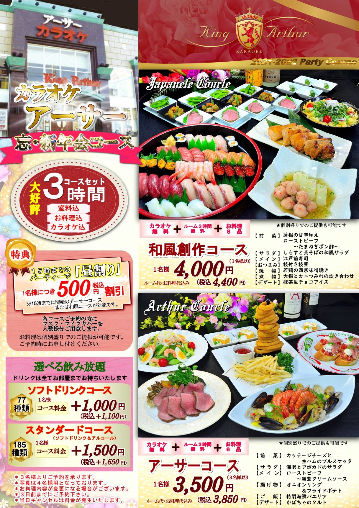 ご友人やご家族と楽しいひとときを、会社の歓送迎会など各種宴会で思い出に残るパーティを、どうぞカラオケアーサーでお楽しみください。